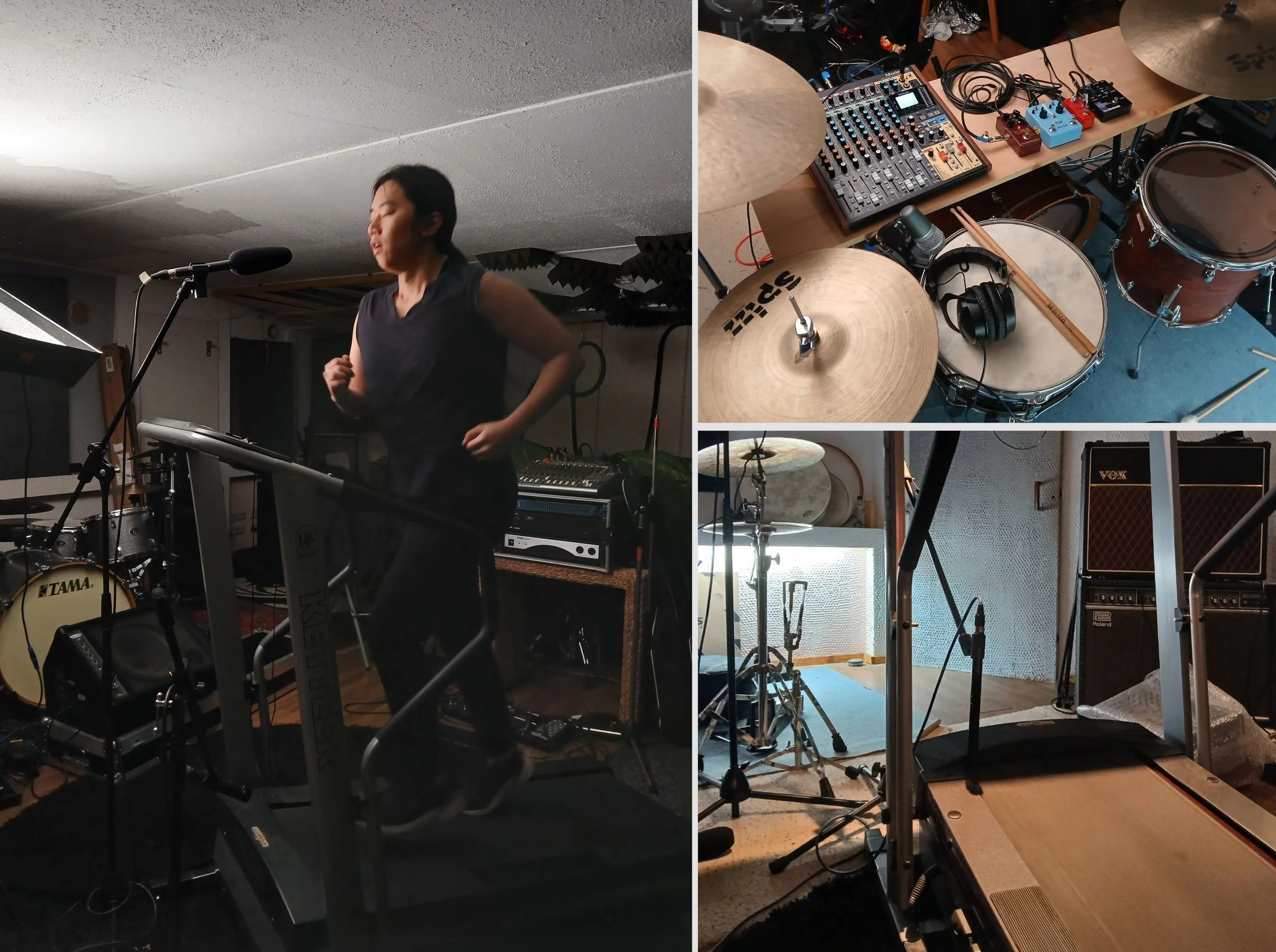 So when I talked to Fanyu Pu about a future project that I wanted to do in combination with a treadmill, we first and foremost bonded over this shared experience of a safe haven, that running represents to the both of us. In the following weeks, we began exploring how the drum set and the treadmill could communicate with each other, reflecting both feelings of haste and stress, as well as comfort and safety, within the same performance.